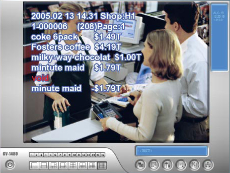 El sistema de vigilancia POS-DVR GeoVision utiliza la tecnología de texto superpuesto en vídeo y proporcionar un conocimiento del contexto visual que ayuda a reducir las pérdidas y proteger los activos contra pérdidas comerciales. Al trabajar en conjunto con modulo Triac - Pos, el sistema de vigilancia GV-Series se puede convertir en un sistema de vigilancia POS / DVR, lo que le ayuda con las herramientas para controlar de forma remota zona del cajero, asociar los datos de transacciones de punto de venta con vídeos, grabar videos para el análisis retroactivo, e incluso las alarmas de salida para los eventos de emergencia.